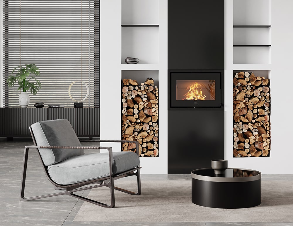HETA’s Vista insert is a modern compact insert, with a panoramic view of enchanting flames through the wide glass door. With HETA’s signature single air control, Vistas combustion is easy to control, giving you the heat or cozy atmosphere, you desire. Along with ease of control the Vista has a stylish integrated door handle and self-latching door, making lighting and re-fueling your Vista enjoyable.